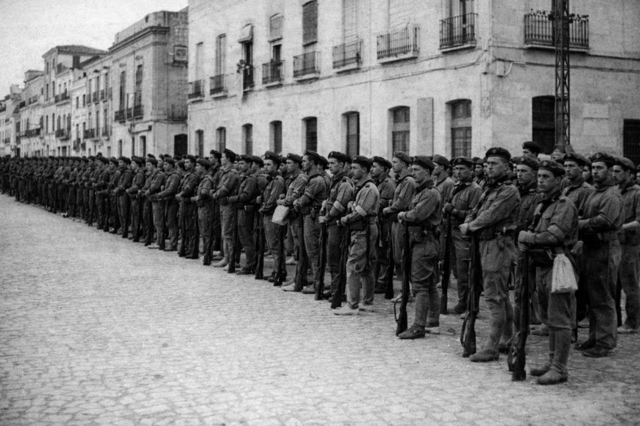 Tropas del general Varela formadas en la plaza